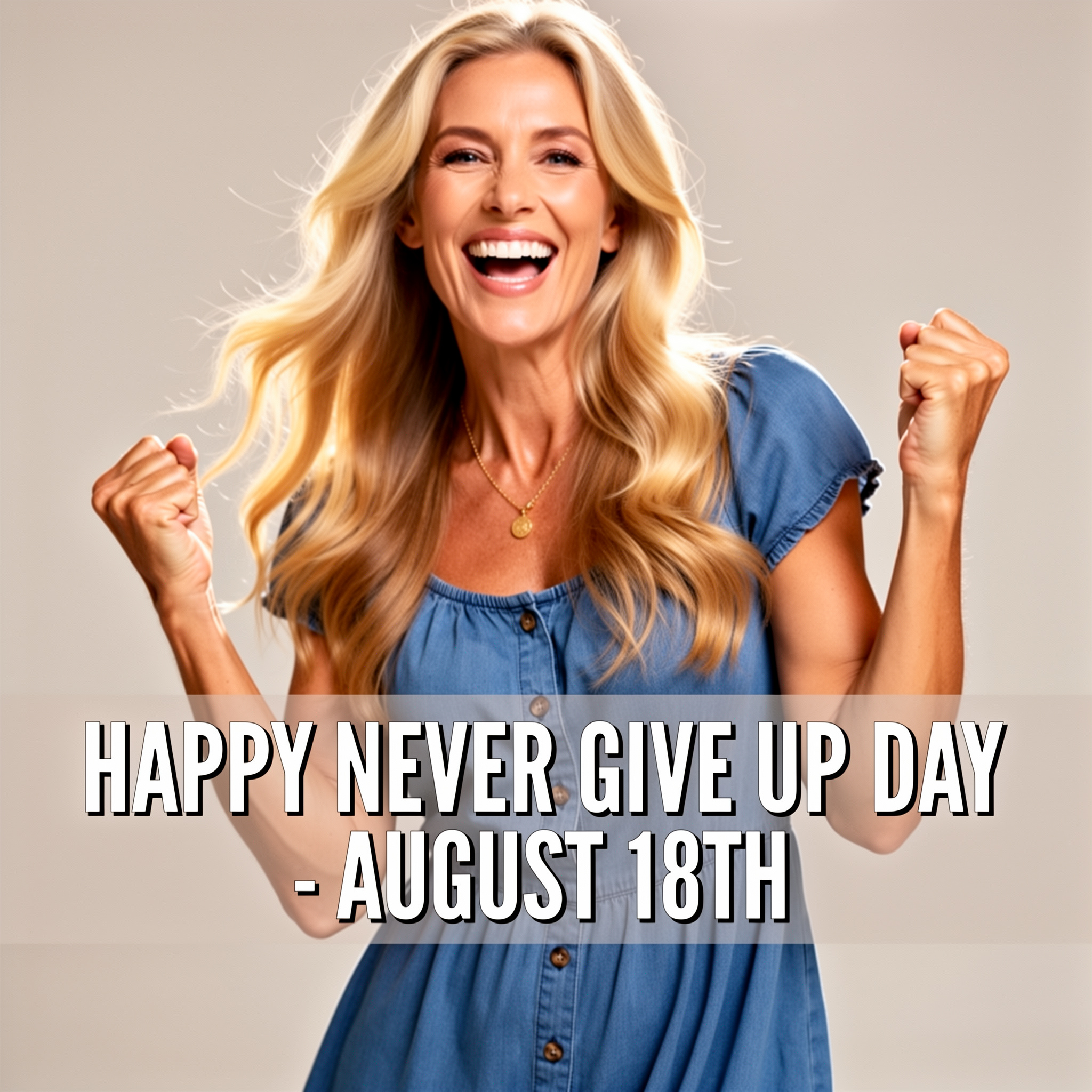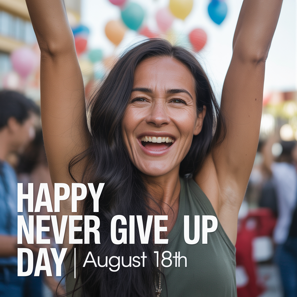 Never Give Up Day on August 18 is a global celebration of perseverance and determination! It’s the perfect occasion to organize an event, launch a challenge, or inspire others with a powerful call to action. Join the movement and show the world what it means to never give up!