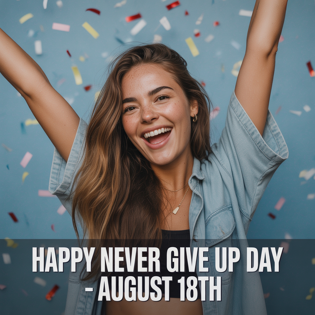 Never Give Up Day on August 18 is the perfect occasion to inspire others with a powerful call to action. Turn courage into creative action, and inspire someone to keep going.