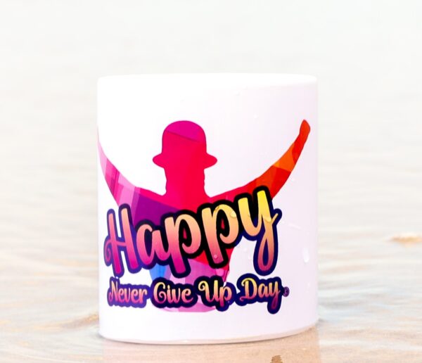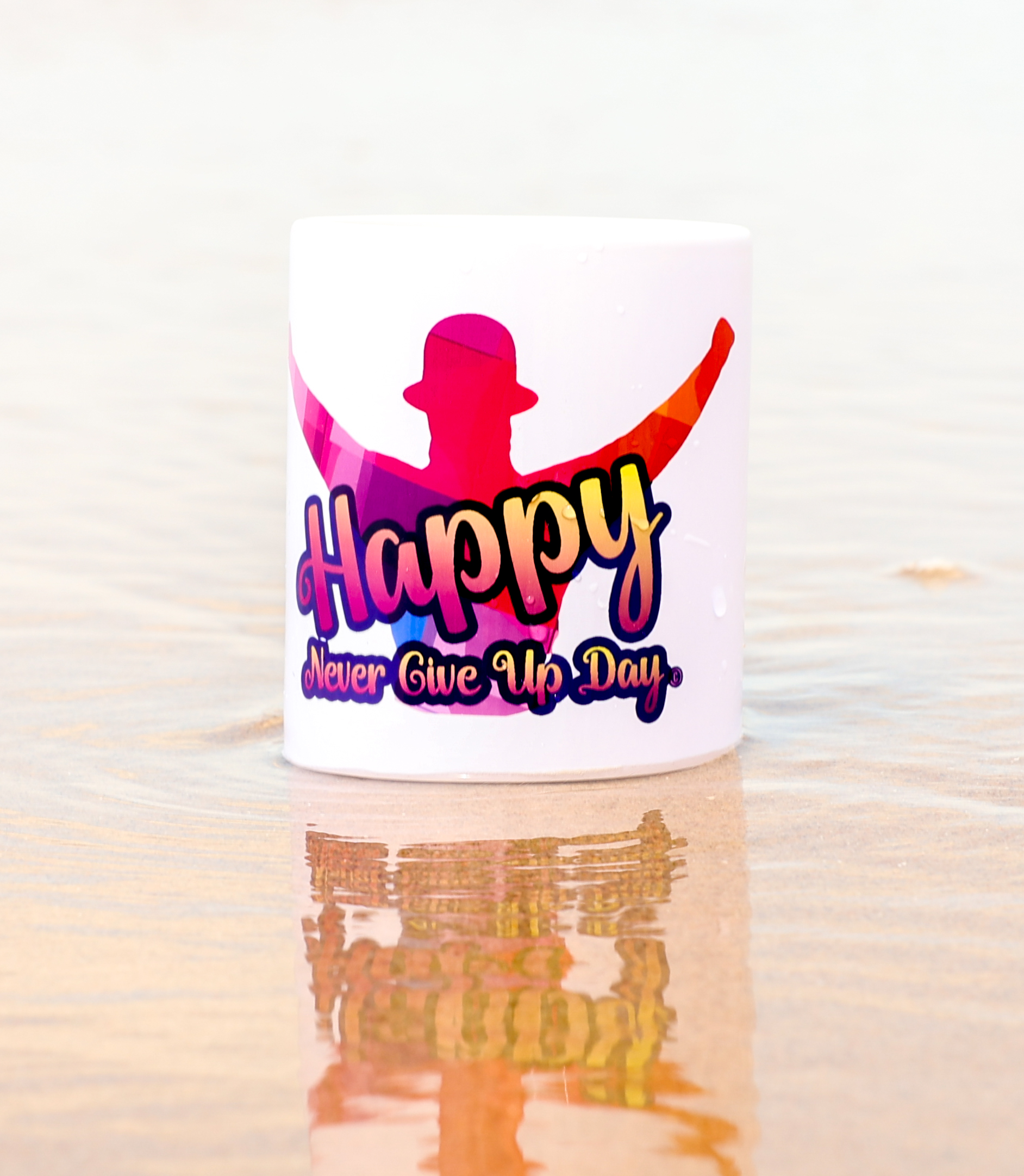 Your Goal. Your Story. Your Mug — the perfect gift for Never Give Up Day.