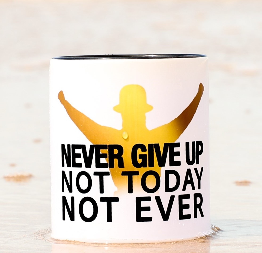 With the powerful message “Never Give Up. Not Today – Not Ever”, this 350ml porcelain mug fuels more than just your coffee — it fuels your mindset.