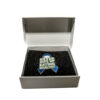 Product details: Soft enamel = base metal: zamac, coated with shiny nickel. Front view: 2D effect, with 4 colors of soft enamel slightly recessed. Finished with a metal edge around the pin and around the individual color areas. Lightly textured metal back + butterfly clasp. Individually packaged in a box.