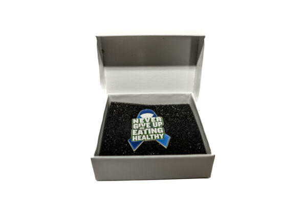 The Never Give Up on Eating Healthy pin is a motivating symbol for those committed to a healthy lifestyle. The blue background represents stability and commitment, while the green text for “Eating Healthy” reflects freshness, vitality, and wellness. Ideal for nutritionists, dieticians, wellness advocates, and anyone dedicated to maintaining a balanced diet, this pin serves as a daily reminder to prioritize health. It’s also a thoughtful gift for someone embarking on their wellness journey, encouraging them to stay on track and never give up on their goals.