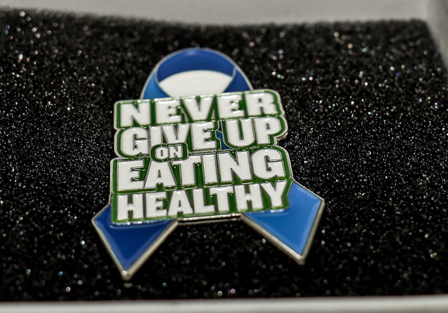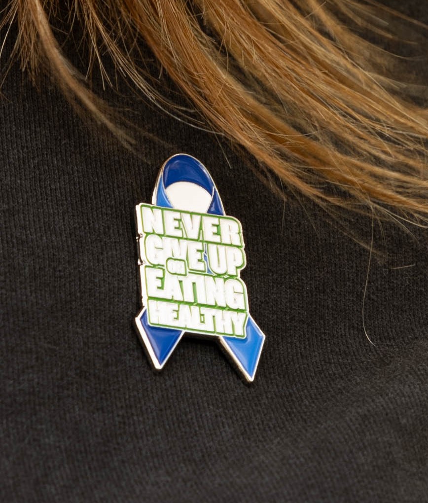 Nourish Your Body: Wear the ‘Never Give Up on Eating Healthy’ Pin. Free Shipping Worldwide